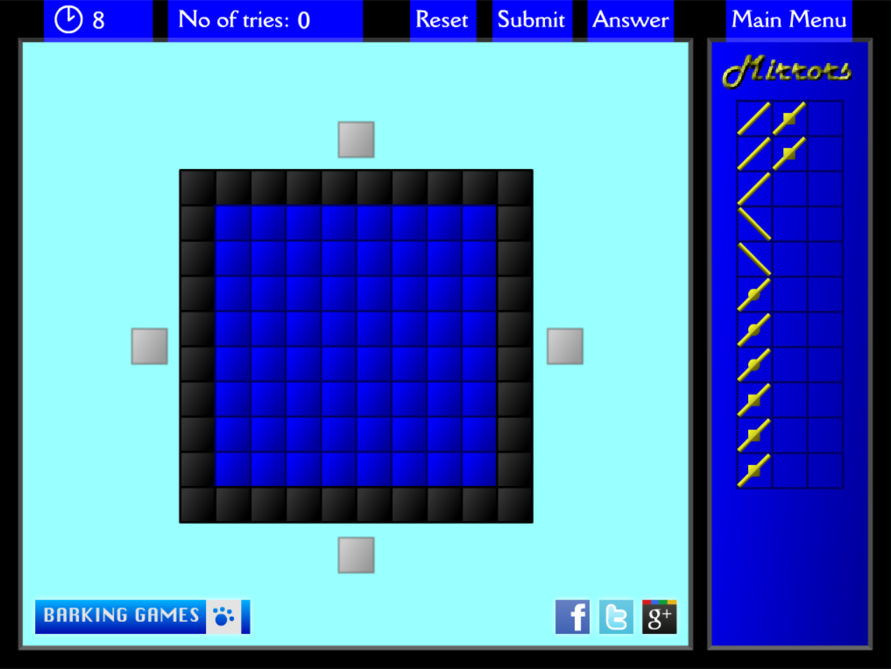 How do you know where mirrors go? Well at the edge of the board you can click to fire balls. The ball will end up somewhere and an arrow will also show. If the ball ends up in the same place as the arrow then this ball's path is correct. If not you will need to place a mirror to direct the ball to the correct place. There are 4 different mirror types in the game. Some spin, some bounce your ball, making it more tricky to know what mirror goes where.