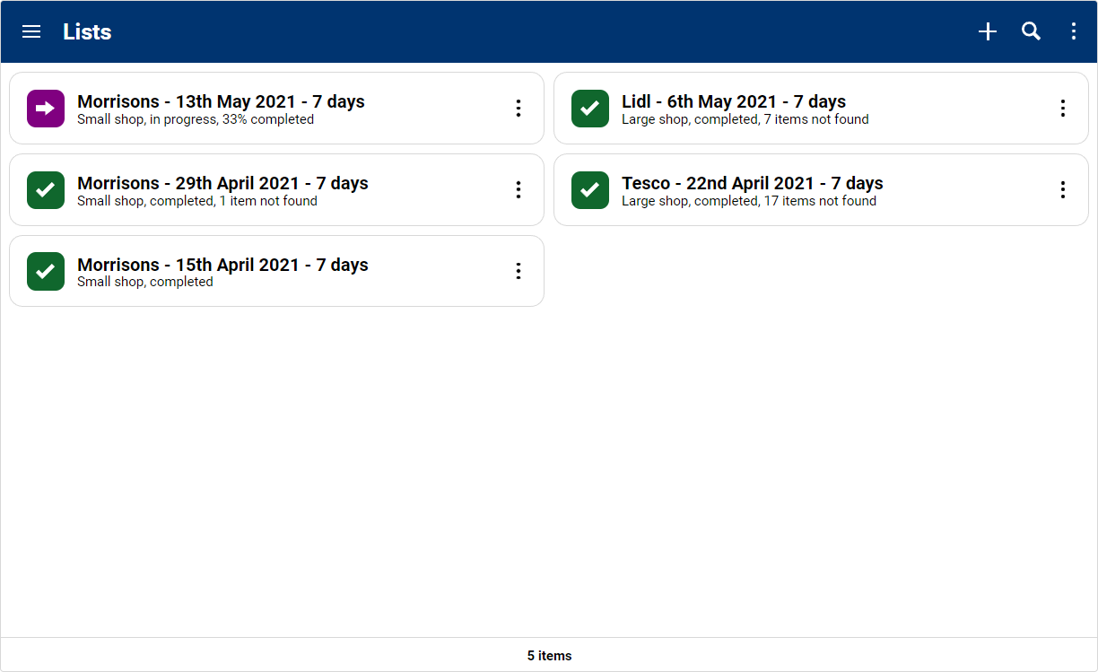 - If you mark an item as not needed and the item lasts a long time, you will be prompted to set a new date for when it is needed. This stops the app bugging you that you need salt every week when you know it will last another 3 months.